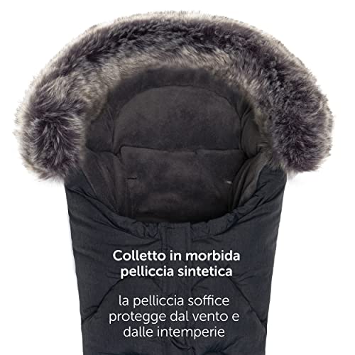 Zamboo Sacco per Ovetto Invernale - Sacco Carrozzina Invernale Neonato Imbracature a 3 e 5 Punti, Collo Pelliccia, Cappuccio e Fodera in Pile - grigio