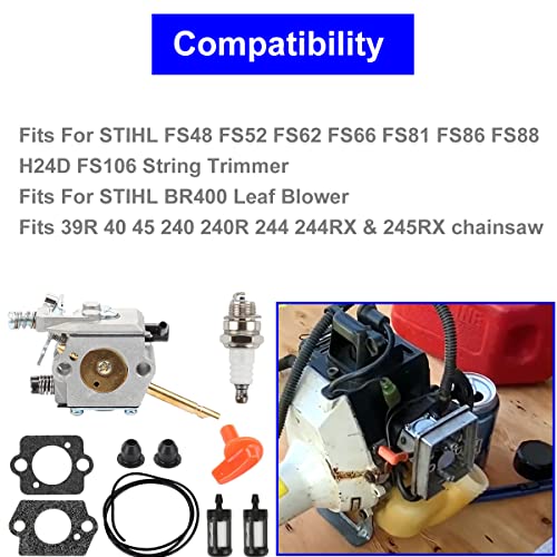 ZAMDOE Kit carburatore per STIHL FS48 FS52 FS62 FS66 FS81 FS86 FS88 FS106 Decespugliatore a Filo BR400 Soffiatore Sostituisce 4126 120 0610, WT-45, WT-45A, WT-45-1