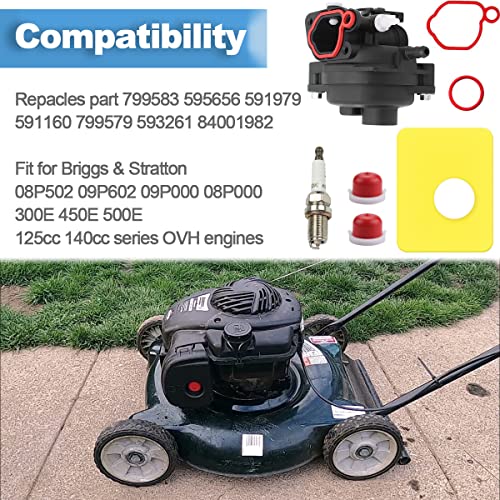 ZAMDOE Carburatore per tosaerba 799583 per motori Briggs & Stratton 300E 450E 500E OVH 125cc 140cc 08P502 09P602 Series Sostituisce 591160 595656 591979 593261