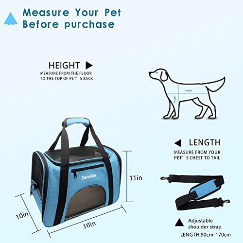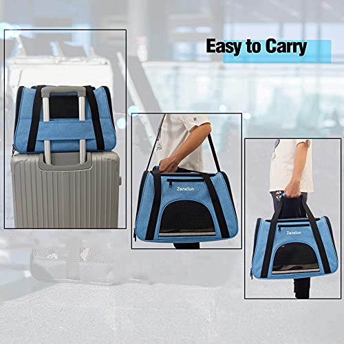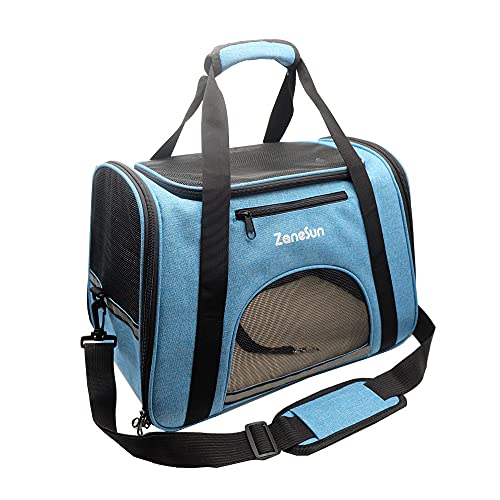 ZaneSun Morbido trasportino per cani e gatti di piccola taglia e cuccioli, approvato dalle compagnie aeree per viaggi, a prova di fuga, traspirante, 5 finestre in rete (blu)