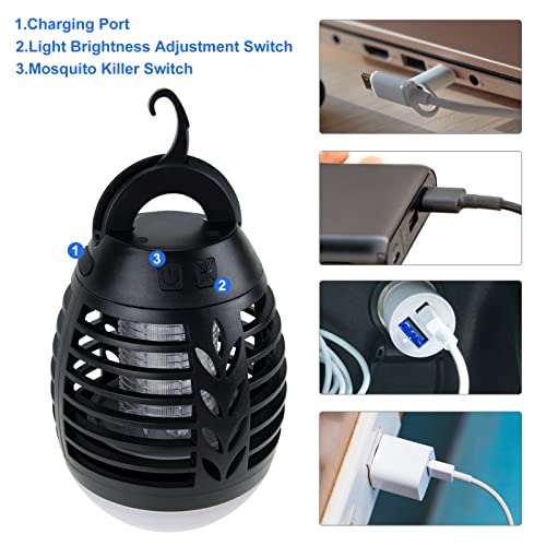 Zanzariera Elettrica con Lampada Campeggio LED Impermeabile USB Ricaricabile Portatile Lampada Antizanzare + Lanterna da Campeggio per Esterno Interno Giardino Tenda Campeggio