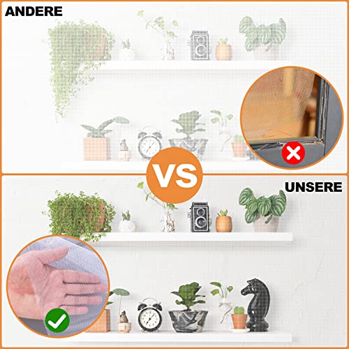 【Zanzariera Finestra di Qualità Alta】- la rete della zanzariera per finestra è in 100% poliestere a foro quadrato, la sua tenacità buona, meglio di quella rete normale, durevole, facile da pulire, leggerissima, resistente. Dopo il montaggio la zanzariera finestra è quasi invisibile, non blocca la vista, ma con buona trasmissione della luce. Non tirare la rete troppo stretta per evitare distorsioni o rotture della rete.