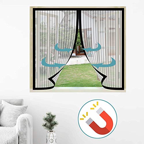 Zanzariera Magnetica Finestra 105x215cm, Protezione Dagli Insetti Zanzariera per Finestra, Auto Chiusura Maticamente Facile Da Installare, for Corrido/Finestra -Nero
