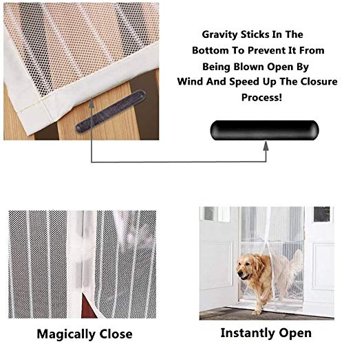 Zanzariera Magnetica per Porta,185x210cm (72.83x82.67in) Chiusura Automatica Adsorbimento Magnetico Rete,Impedendo agli Insetti di Entrare Mantenendo la Circolazione Dell'aria-Bianco