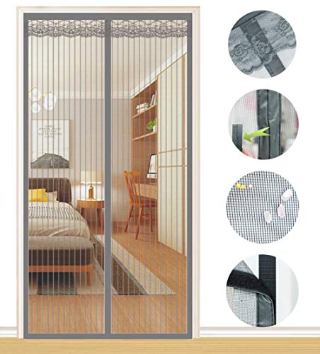 Zanzariera Magnetica per Porta,70x260cm (27.55x102.36in) Chiusura Automatica Adsorbimento Magnetico Rete,Impedendo agli Insetti di Entrare Mantenendo la Circolazione Dell'aria-Grigio