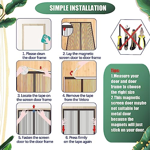 ★ Facile installazione senza attrezzi: la nostra porta magica per tende viene fornita con un forte nastro magico e strisce di contrappeso, che consentono di installare facilmente la zanzariera senza bisogno di attrezzi. I perni inclusi aiutano ad attaccare la rete al telaio della porta in legno in modo più efficace, garantendo una vestibilità sicura.