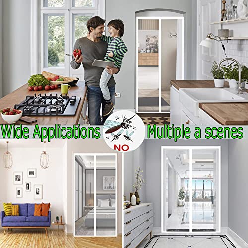 【Fresh Air Must】: Questa zanzariera magica è permeabile al gas e trasparente.Apri la porta e goditi l'aria fresca senza, la porta della zanzariera ci protegge da insetti, mosche, goditi l'estate sana, confortevole e piacevole.Questa mosca lo schermo della porta con chiusura magnetica può essere facilmente fissato alla porta del balcone, alla camera da letto, alla cucina, alla cameretta dei bambini o alla porta scorrevole.