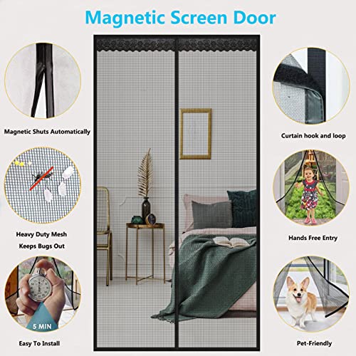 【ACCESSO A MANI LIBERE】 :Sistema di chiusura magnetica consente un comodo ingresso e uscita a mani libere. Anche i bambini e gli animali domestici possono passare facilmente attraverso la rete. La tenda dello schermo non può essere accorciata! traspirante, durevole e resistente all'usura, abbastanza forte per anni di utilizzo.