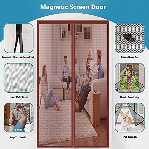 Zanzariera Magnetica per Porte,80x210cm (31.49x82.67in) Tenda Totalmente Magnetica, si Chiude da Sola, Mantiene Gli Insetti Fuori,Mantiene Stanza Traspirante Senza Zanzare -Marrone