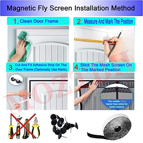 ♀♀♀【FACILE DA MONTARE】Con l'aiuto di un nastro adesivo, la zanzariera magnetica può essere facilmente e velocemente attaccata sul perimetro del vano senza foratura. La zanzariera NON è RIDUCIBILE. Si prega di misurare le dimensioni della porta prima di ordinare la zanzariera magnetica