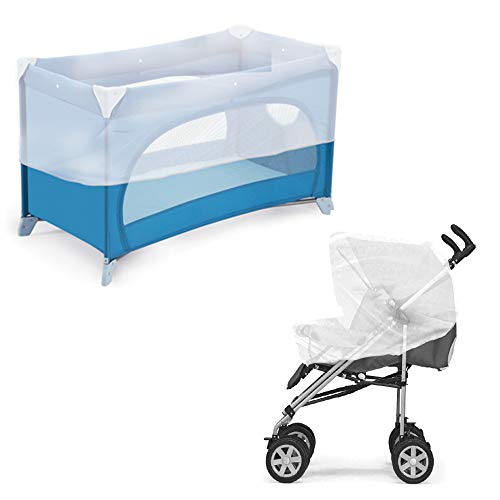 Set Zanzariera Universale ANTIZANZARE per Passeggino+Lettino Culla o Campeggio, Riflettente Protettiva, con Bordi Elastici, Lavabile