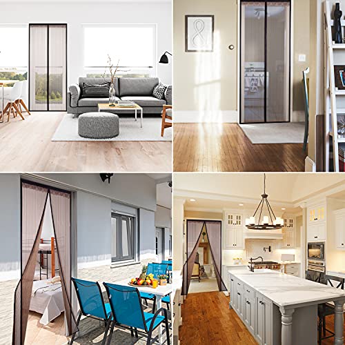 Zanzariere magnetiche per porte 90 x 210 cm, tenda a rete resistente per insetti, con crittografia a strisce super silenziose per tenere lontani gli insetti e lasciare entrare l'aria fresca (caffè)