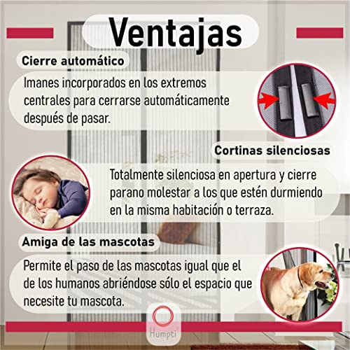 Misure: include 1 pannello con apertura centrale. Larghezza x altezza zanzariera 90 x 210 cm. Regolabile e adattabile a diverse altezze, larghezze e tipi di porte o finestre.