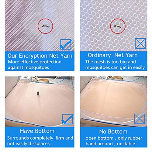 【Nuovo design a rete crittografata 】nuova zanzara pop-up avanzata Dimensioni: W180 * L200 * H150 cm Utilizza un design crittografato a 18 mesh (generalmente le zanzariere sono 13 fori), che protegge efficacemente zanzare, ragni e altri insetti dalla porta Pur mantenendo una buona ventilazione