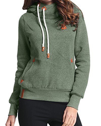 ZANZEA Donne Dolcevita Caldo Cappotto invernale giacca Felpa con cappuccio verde IT 40/ASIA M
