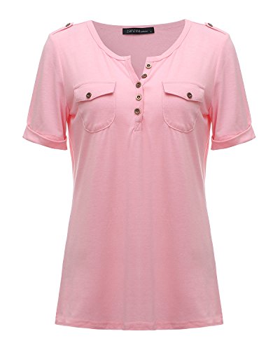ZANZEA Donne Maglietta Maniche Corte Casual Ufficio T-Shirt Elegante Camicetta V-Collo Sottile Top