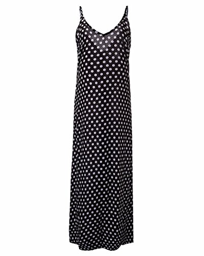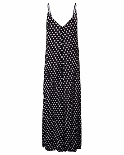 ZANZEA Donne Scollo a V Pois Tasca Vestito lungo Abito della Boemia Abito da Sera del Partito Vestito mare Vestito estivo nero IT 48-50