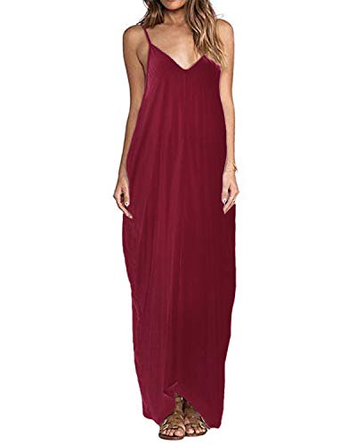 ZANZEA Donne Vestito Casuale Spiaggia Elegante Cotone Camicetta Lungo Maxi V Collo senza Maniche Bordeaux IT 52
