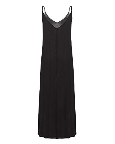 ZANZEA Donne Vestito Casuale Spiaggia Elegante Cotone Camicetta Lungo Maxi V Collo senza Maniche Nero IT 42