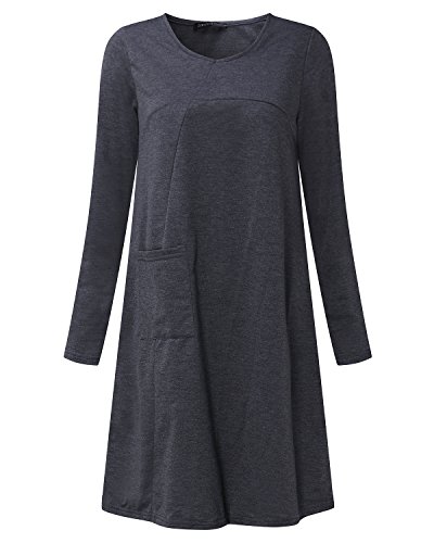 Zanzea - Vestito - Tunica - Collo a U - Maniche lunghe - Donna