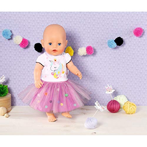 Zapf Creation 870495 Dolly Moda - Maglietta con Unicorno e Tutù, 43 cm, Colore: Lilla/Bianco