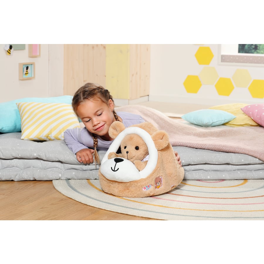 Dettagli del prodotto: Età: da 12 mesi Ogni orso ha bisogno di una grotta accogliente in cui andare in letargo Accogliente letto per l'orso BABY born® e i suoi amici Dimensioni e peso: Dimensioni della confezione (lunghezza x larghezza x altezza): 10,16 x 33,02 x 25,4 cm Materiale e cura: Materiale: Poli morbido velboa + peluche, poli maglia singola
