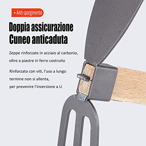 Zappa giardino multiuso, zappa in acciaio temprato con manico in legno per allentare il terreno, tagliaerba diserbare e tagliare, coltivare piante e ortaggi, zappetta pulire le erbacce (A)
