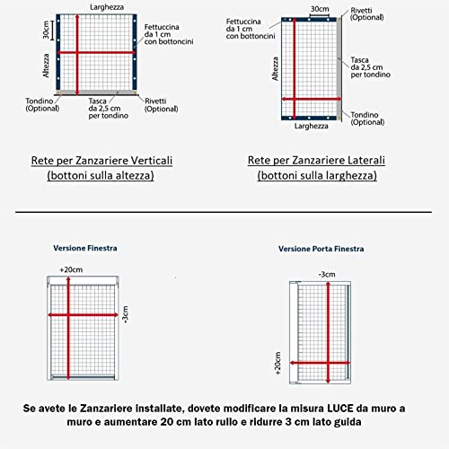 La zappa Rete di ricambio zanzariera a rullo telo con tasca prodotto su misura "Made in Italy" 150 x 250 cm Laterale
