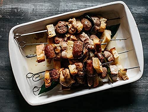 ZASEVES batticarne con rompi nervi e 4 spiedini Inox Kit Tenere bistecche cotolette involtini Prodotti Italiani CREAZIONI i Colori nel Cuore