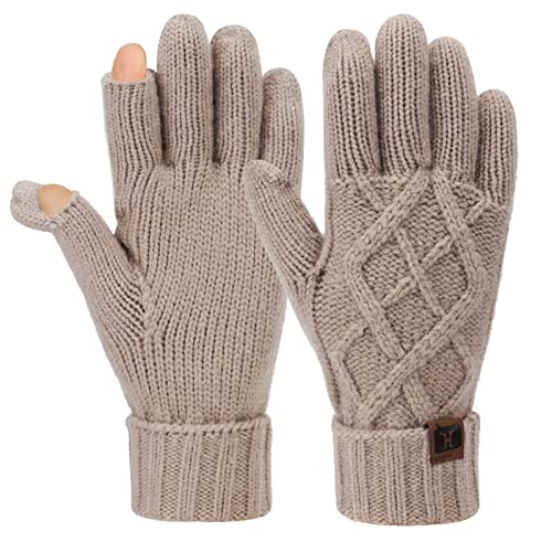ZASFOU Guanti invernali da donna elasticizzati caldi con dita per touchscreen Guanti con polsini a coste in maglia a trecce
