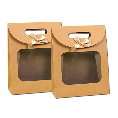 DESIGN SQUISITO: la confezione regalo in carta kraft ha una maniglia e un design a finestra, che non è solo facile da aprire, ma ti consente anche di vedere il contenuto all'interno. Il design del fondo rettangolare mantiene anche gli oggetti in posizione verticale per un facile trasporto.