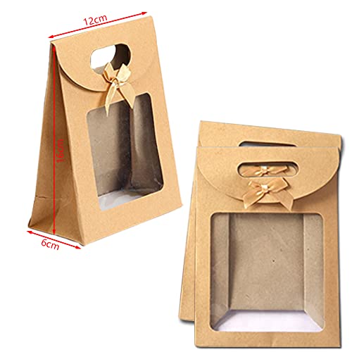 Materiale e dimensioni: la confezione regalo in carta kraft è realizzata in carta kraft, che è classica ed elegante, non facile da danneggiare e può essere utilizzata ripetutamente. La borsa regalo con finestra misura 12x6x16 cm ed è adatta per il trasporto a mano.