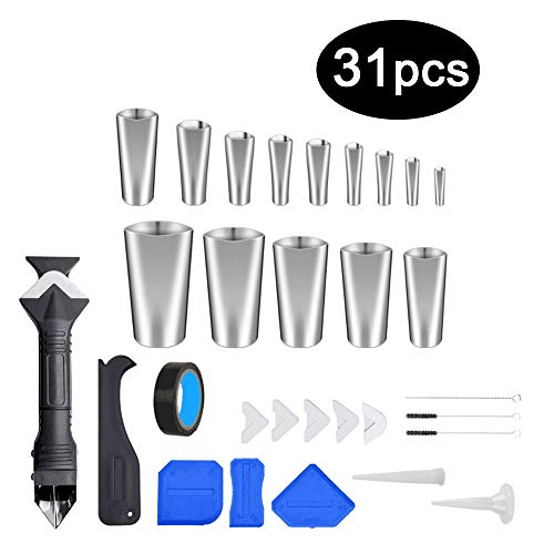 Zasiene Ugello di Tenuta 31 Pezzi Applicatore Ugello Sigillante Kit Ugello per Calafataggio Strumento di Calafataggio Raschietto Silicone