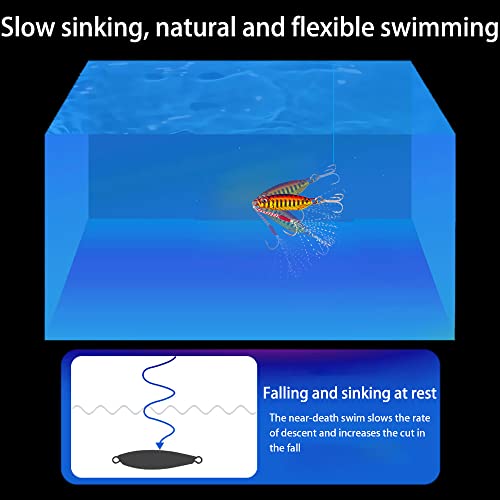 【Quantità】 Riceverai esche luminose artificiali 5pcs. Ottimo per la pesca dacqua dolce e salata, ottimo per carpa, trota, orata e altro ancora., Permettendoti di goderti una piacevole pesca.Ogni esca pesa circa 10 grammi e il peso totale del set di esche da 5 pezzi è di circa 50 grammi.