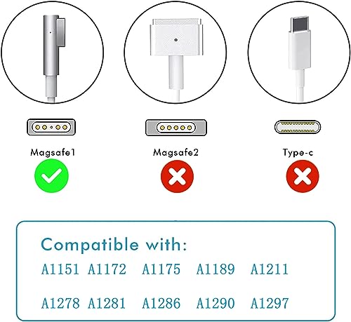 Ampia Compatibilità: Caricabatterie Mac Pro Compatibile con Mac Book Pro 15""1150 A1211 A1226 A1260 A1286 e 17"" 1151 A1212 A1229 A1261 A1297 (inizio 2006, fine 2006, metà 2007, fine 2007, lucido, Core 2 Duo, inizio 2008, fine 2008, inizio 2009, metà 2009): MA092/A, MA463/A, MA464/A, MA600, MA601, MA609, MA610, MA611/A, MA895, MA896, MA897. Adatto per A1344, A1330, A1342, A1278, A1185, A1184, A1286, A1181.