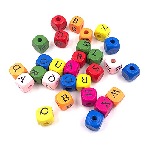 Zasvec 200 Pezzi Perline Lettera di Legno Colorato Misto A-Z Alfabeto Lettera Cubo Perline di Legno Perline Cubiche Misto Piccolo Quadrato di Legno Perline Colore Misto 10mm