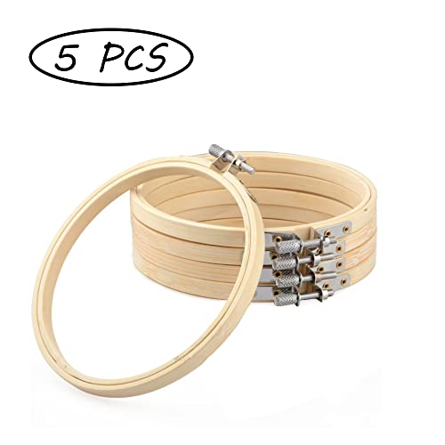 Zasvec Telaio da Ricamo 26cm 5 Pezzi Cerchio da Ricamo Anello a Cerchio a Punto Croce Regolabile Cerchi da Ricamo Bambù Telaio da Ricamo in Legno per Fai da Te Cucito d'Arte Artigianato