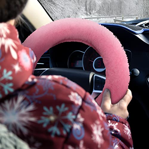 ZATOOTO 3PCS Coprivolante in Peluche, Coprivolante in Pelliccia Sintetica Invernale con Copertura del Freno a Mano e Copertura del Cambio per le Donne Ragazze, 14.5-15in/37-38cm (Rosa)