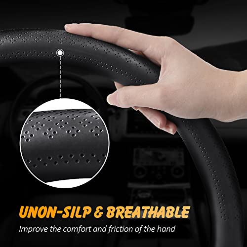 ZATOOTO Coprivolante per Auto, Protezioni per Volante in Pelle Sintetica Antiscivolo Ultra Sottile, Morbida e Traspirante, Misura Universale M 37-38cm / 14.5-15inch, Nero