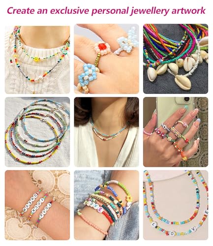 120 Colori Perline fai da te: Immergiti in splendide 120 tonalità incantevoli curate con accattivanti composizioni di arcobaleni sfumati.Ogni tonalità è accuratamente disposta in scomparti dedicati per garantire la coordinazione dei colori ed eliminare ogni potenziale confusione.Molteplici tonalità combinate con una gamma di accessori consentono di creare accattivanti gioielli e design di bracciali che si distinguono per il loro fascino unico.