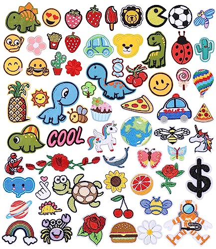 Zawaer Toppe Termoadesive Ricamate, 65 PCS Toppe Termoadesive Bambini, Toppa Ricamata, Toppe Per Tessuti, Toppe Da Stiro, Vestiti Toppa Ricamata Fai Da Te Patch, Per Giacche, Cappelli, Zaini, Jeans.
