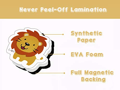 Laminazione mai sfoderabile. Questo leggero magnete è laminato con carta sintetica, con schiuma e retro magnetico in gomma. Tutti i materiali utilizzati sono sicuri e durevoli. Resistono molto bene alla tipica manipolazione grossolana da parte dei bambini.