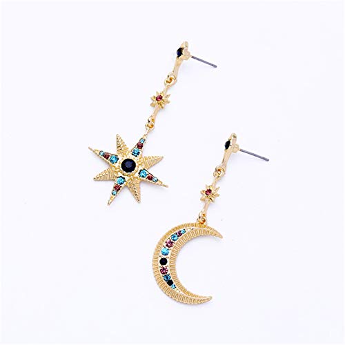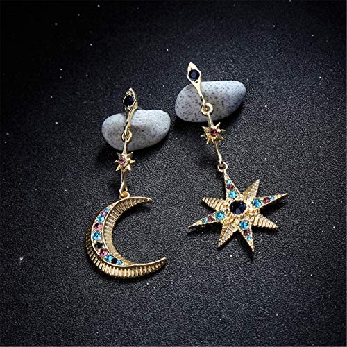 ZBOMR Bohemian Moon Star Asimmetrico Orecchini a cerchio pendenti Crystal Moon and Sun Drop Stud Orecchini lunghi Retro squisito stile punk Accessori Gioielli per donne Ragazze (Black) (Gold-C)