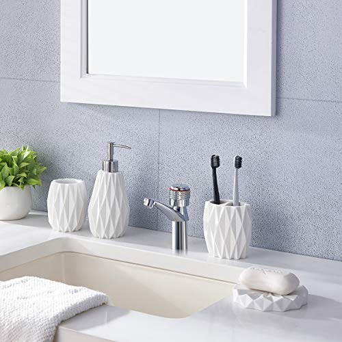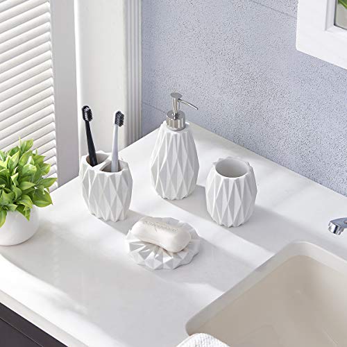 Zccz Set Bagno Accessori Completo 4 Pezzi - con Dispenser Sapone, Porta Spazzolino, Bicchiere Porta Sapone - Moderno - Bianco