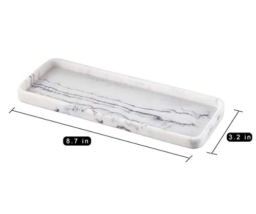 Simpatico set di accessori da bagno in effetto marmo: si tratta di un effetto marmo bianco con sottili strisce nere e grigie. Molto carino ed elegante, aggiunge un tocco bello e pulito e facile da abbinare
