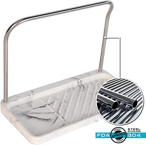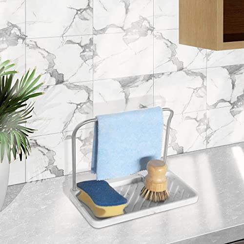 ZCCZ CREATE - Porta strofinacci, per lavello da cucina, con asta, organizer per spugne, asciugamani, stracci, spazzole, per tenere ordinata la cucina (effetto marmorizzato bianco)