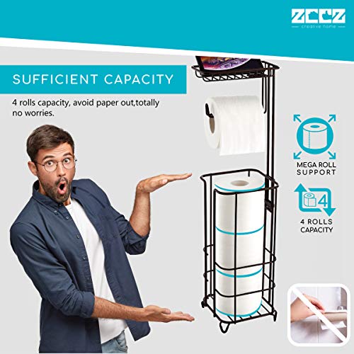 ZCCZ Supporto per carta igienica, autoportante, porta rotolo di carta igienica con ripiano per cellulare, salvietta, portafoglio e altro ancora