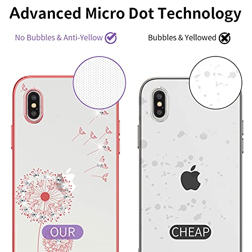 ZCDAYE - Custodia per iPhone Xs Max, cover per iPhone Xs Max, con brillantini e strass, motivo dente di leone, per ragazze e donne, in morbido TPU, trasparente, per iPhone Xs Max-Rose Gold