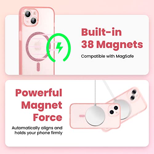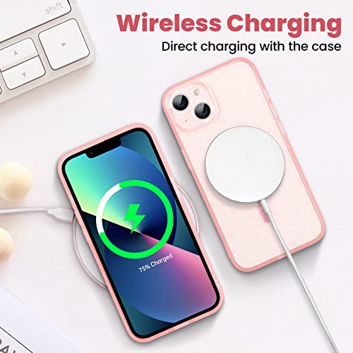 ZCDAYE Custodia per iPhone 13 Wireless Ricaricabile, Stella Lucida iPhone 13 Custodia TPU Cover iPhone 13 Case Rosa con Magnete
