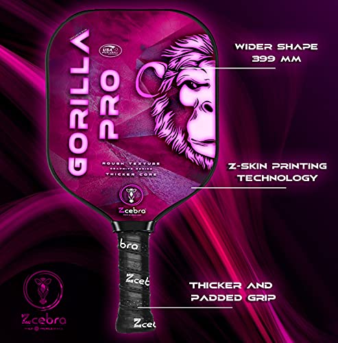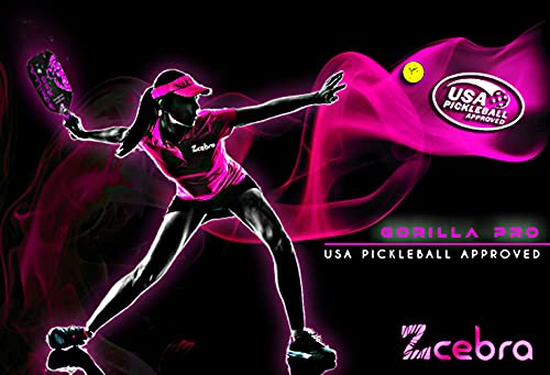 ZCEBRA Racchetta da Pickleball Grafite Paddle in Fibra di Carbonio Nucleo Rinforzato da 16 mm di Spessore del Pannello di Ape in Polipropilene Texture Rugosa Set Custodia in Neoprene Gorilla PRO Pink